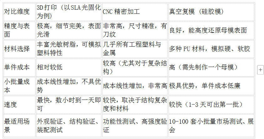 當您需要十幾套甚至幾十套樣件用于市場調研、展會展示或小范圍用戶測試時,真空復模的優勢就體現出來了。它利用一個母模(通常由CNC或SLA制作)來快速復制樣件,極大地攤薄了每一件的成本,是小批量原型制造的“性價比之王”。