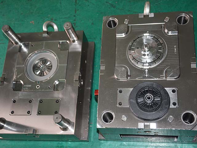 BMW end cap 1000T大型雙色模具,前模頂出需要開模同時沿分型面頂出,合模需要分型面推前模頂出系統回位,經過我們工程團隊前期跟客人提出的有效建議對產品的優化,結果模具試模一次成功。